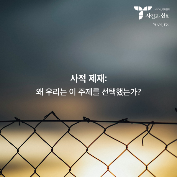 이에 이번 8월 <사건과 신학>에서는 인간 사회에서 끊이지 않는 사적 제재에 관한 정치적이며 신학적인 성찰을 해 보고자 한다.